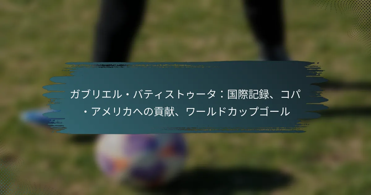 ガブリエル・バティストゥータは、アルゼンチン代表チームでの印象的な国際記録で知られており、ゴールや出場数において重要な貢献をしました。彼の遺産には、素晴らしい得点記録とコパ・アメリカやFIFAワールドカップのような主要トーナメントでの顕著な成果が含まれています。